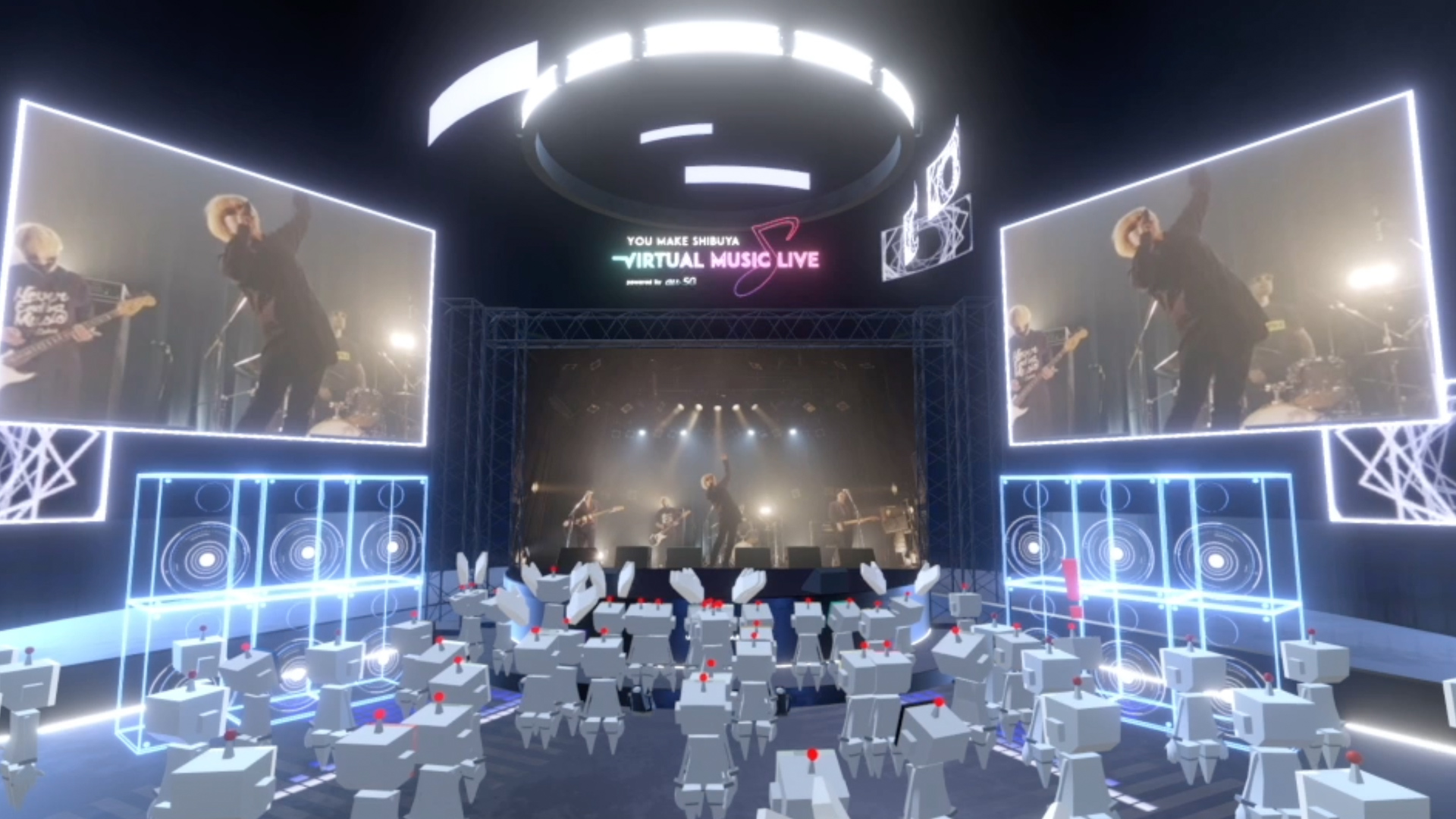 ここまでの説明だけでは、バーチャル渋谷、バーチャル・ライヴハウスの具体的なイメージがつかない方もいると思うので、今回は、ライヴハウス“SHIBUYA UNDER SCRAMBLE powered by au 5G”のこけら落とし公演“YOU MAKE SHIBUYA VIRTUAL MUSIC LIVE”の模様をレポートする。